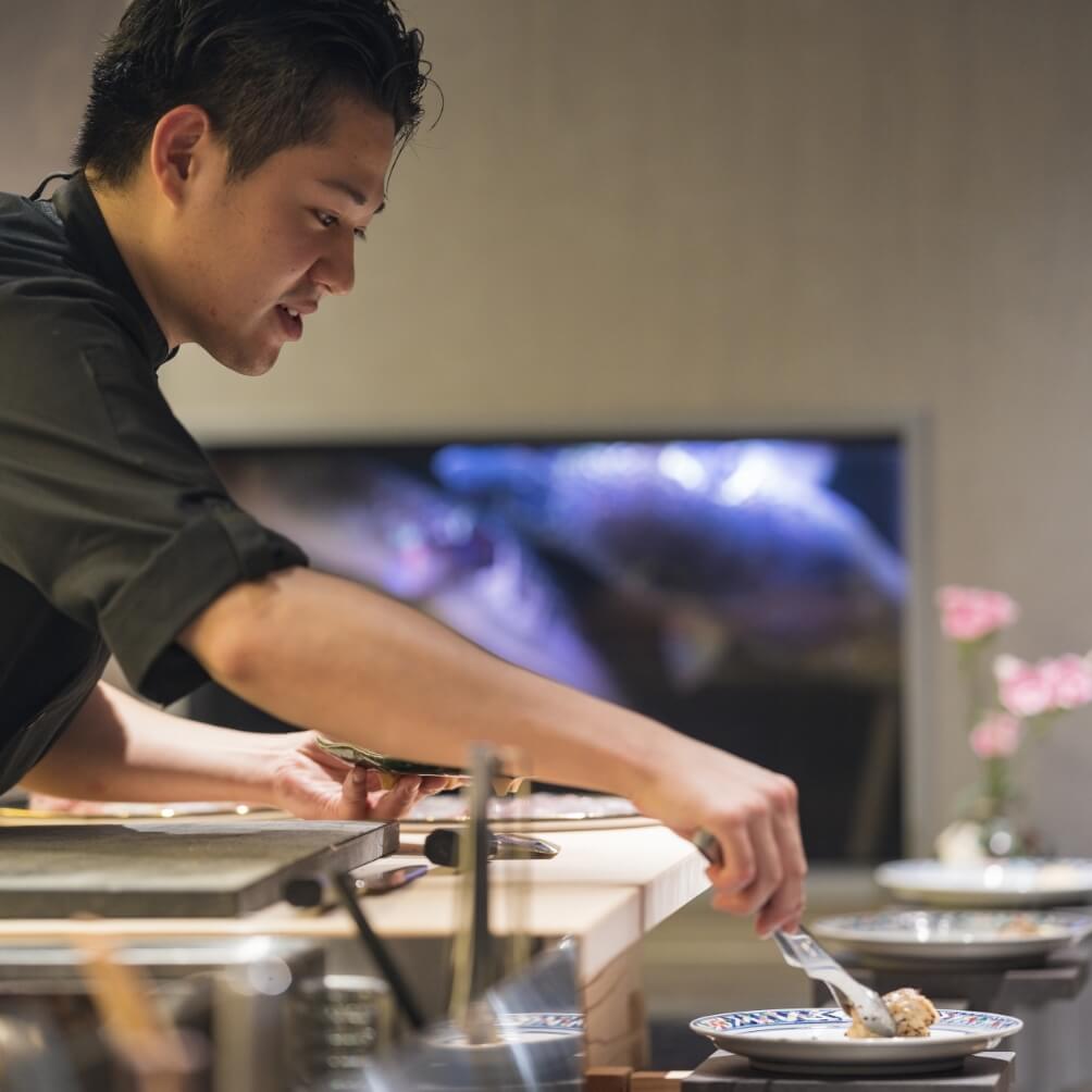5ーSクラス大型天然とらふぐを使用しカウンターLIVEでシェフが目の前で調理致します。